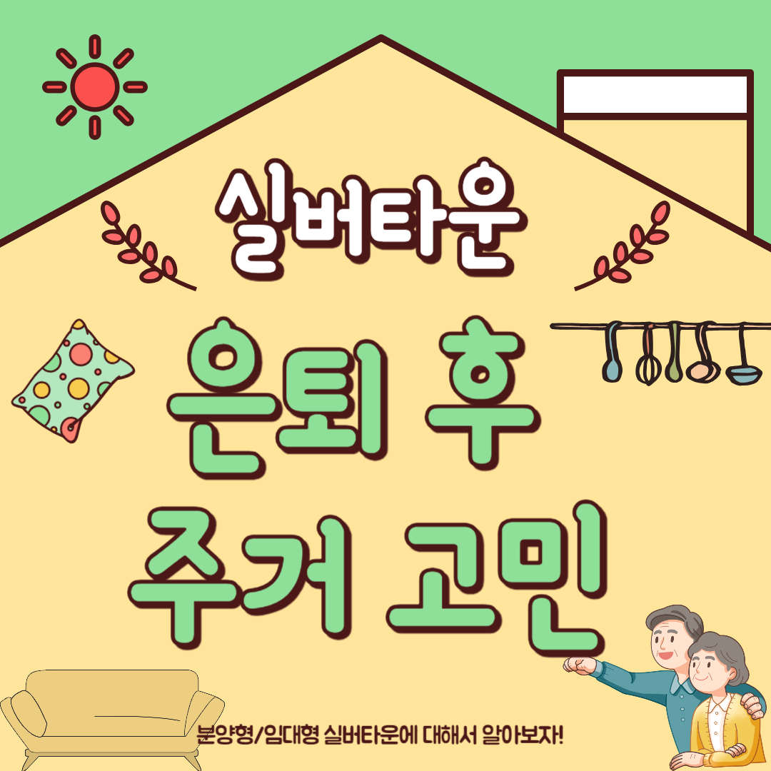 실버 타운이란 노인 인구가 늘어나면서 노인 복지시설 중 하나로, 노인들이 안정적으로 생활할 수 있는 주거공간을 제공하고, 건강/영양 관리 서비스, 운동시설, 은행, 약국, 편의점 등 다양한 부대시설을 갖추고 있는 것이 특징입니다. 과거에는 '요양원' 같은 이미지 였다면 지금은 노후를 위한 최고의 주거시설로 알려지고 있습니다.